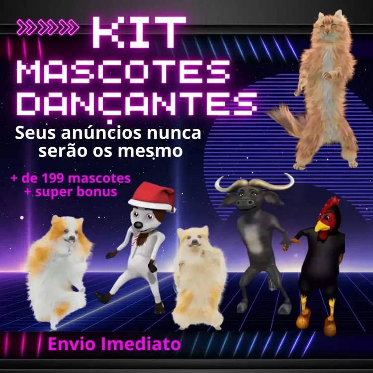 O nosso super pacote de Pets Mascotes dançantes é a maior isca de clientes das redes sociais. Todos amam e adoram ver os PETS Mascotes dançantes e super divertidos nos anúncios.